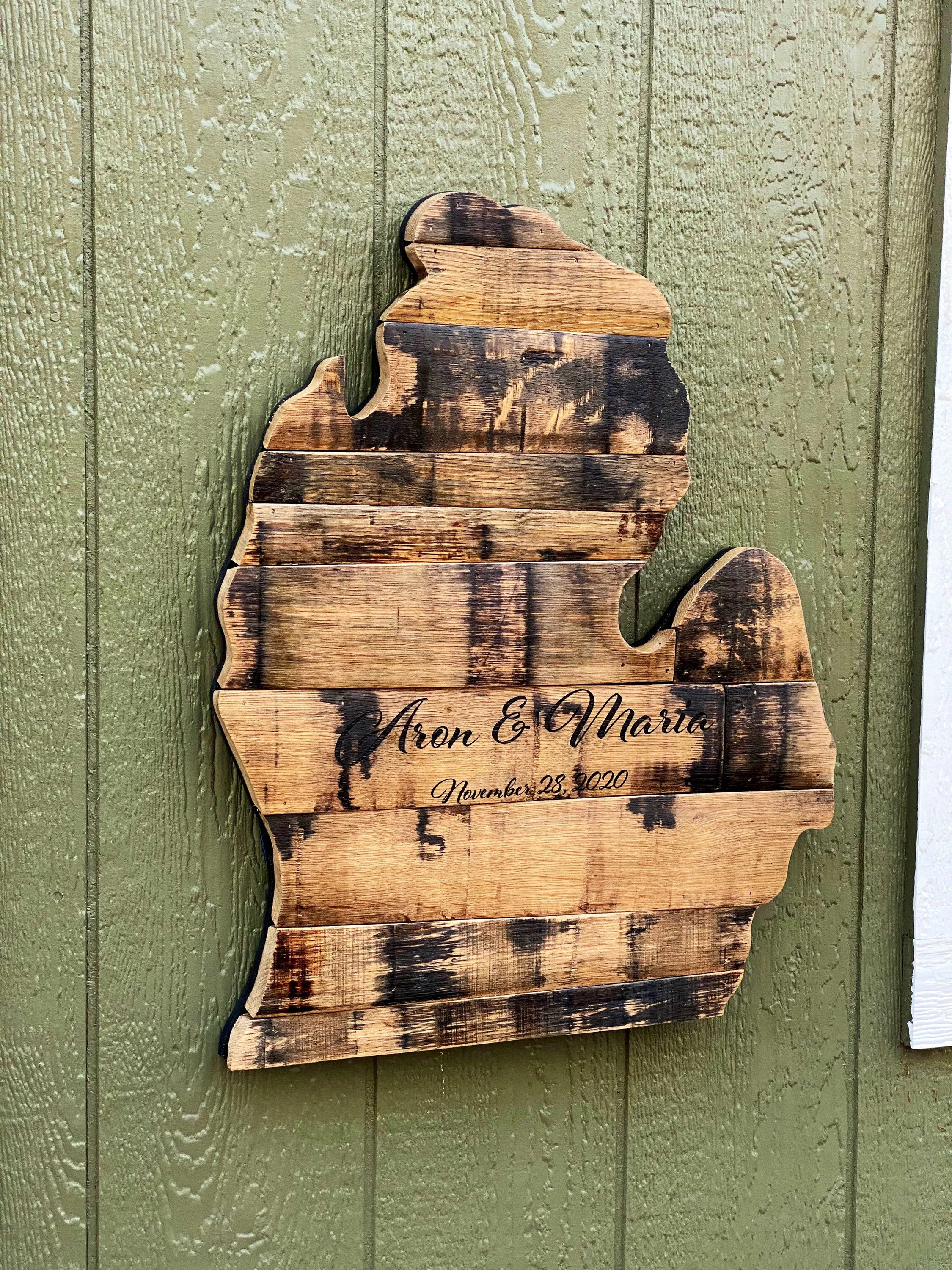 This item is handcrafted from reclaimed bourbon barrel staves.