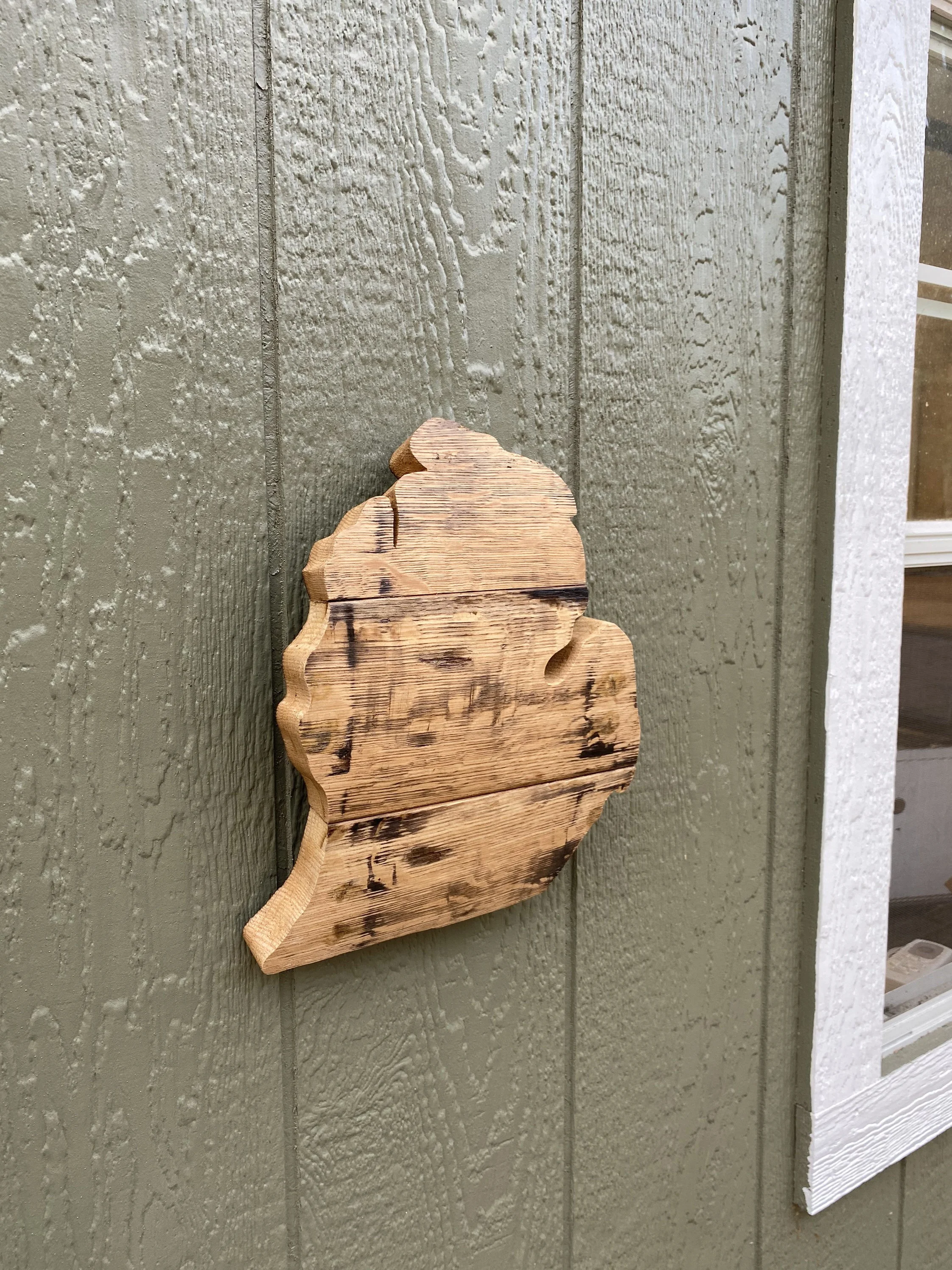 • Reclaimed Barrel Staves attached with finish nails