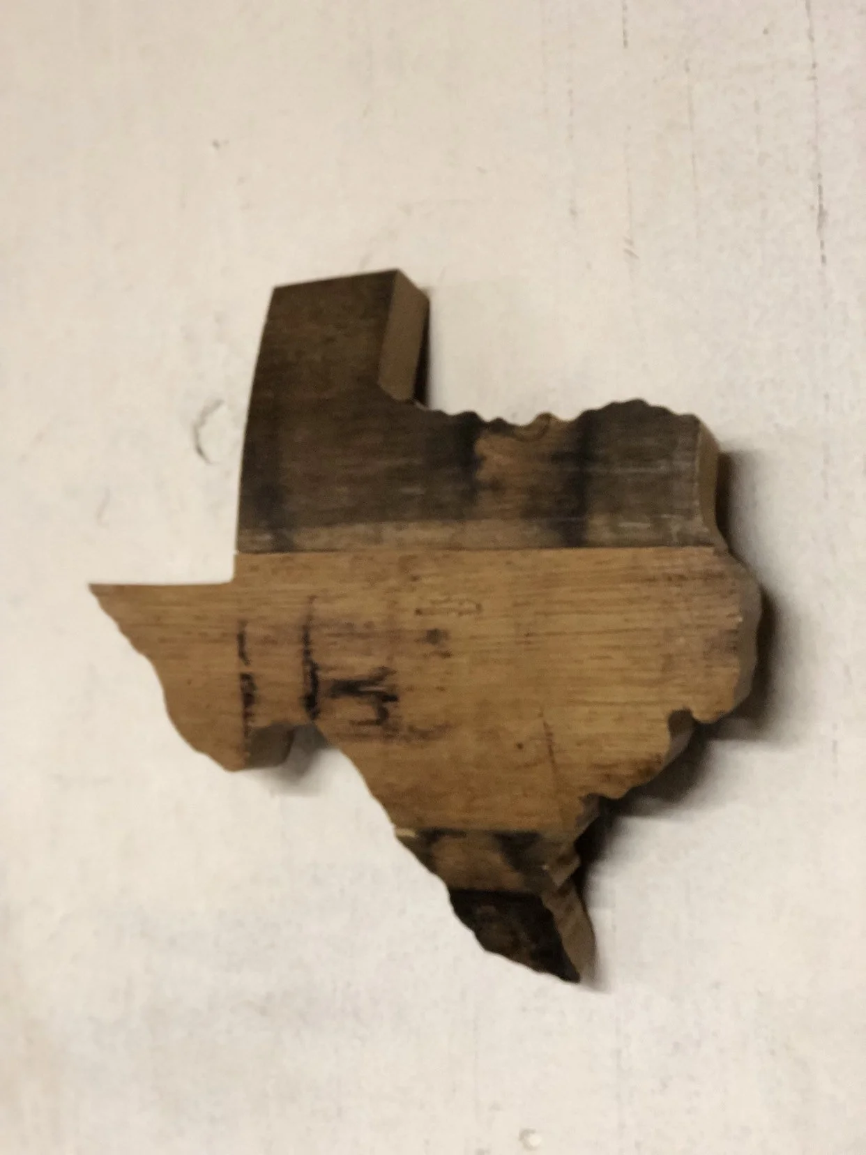 This Texas State Cutout shows weathering from the bourbon aging on the oak wood.