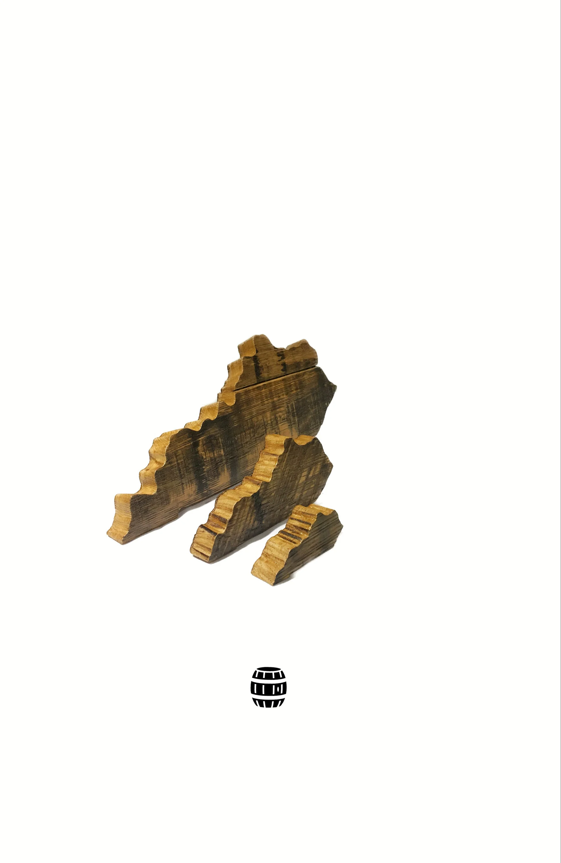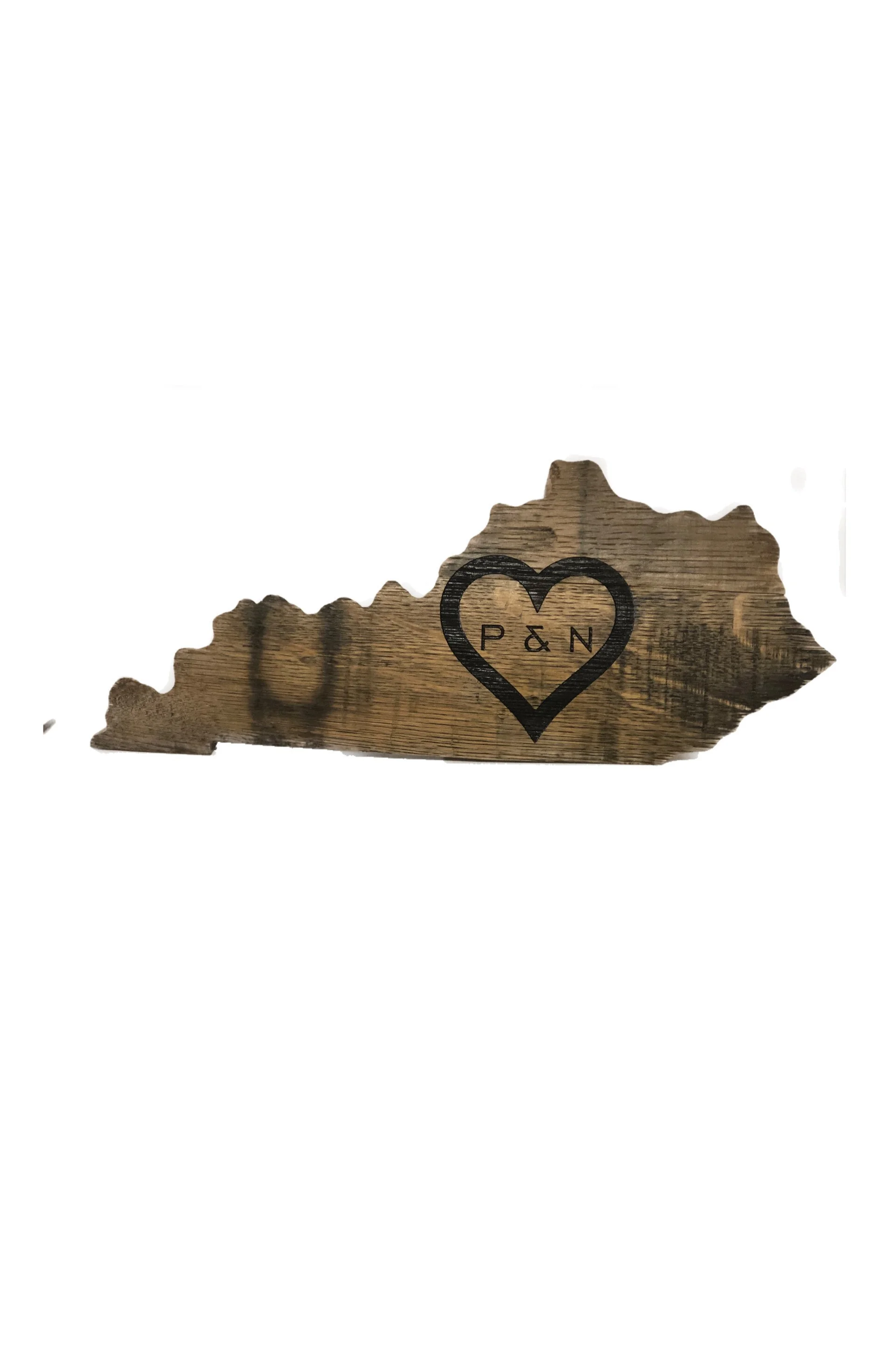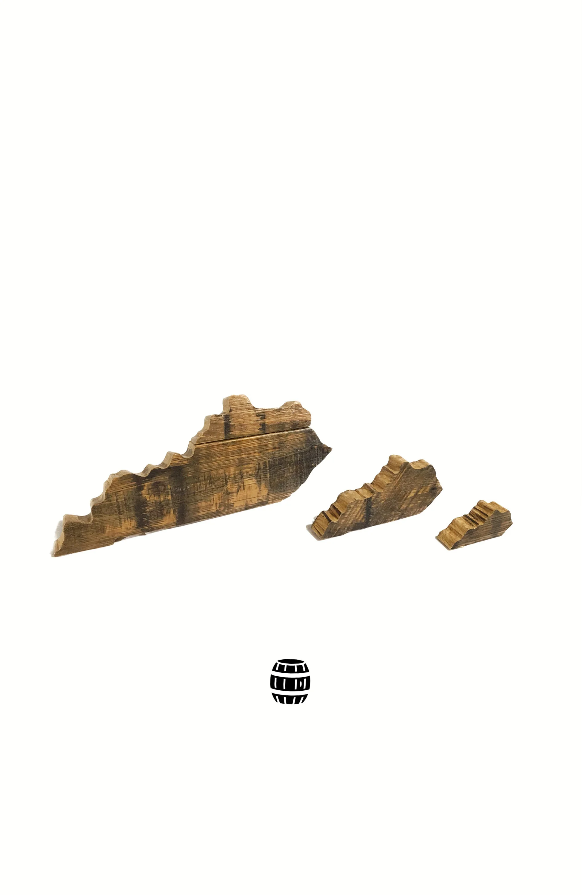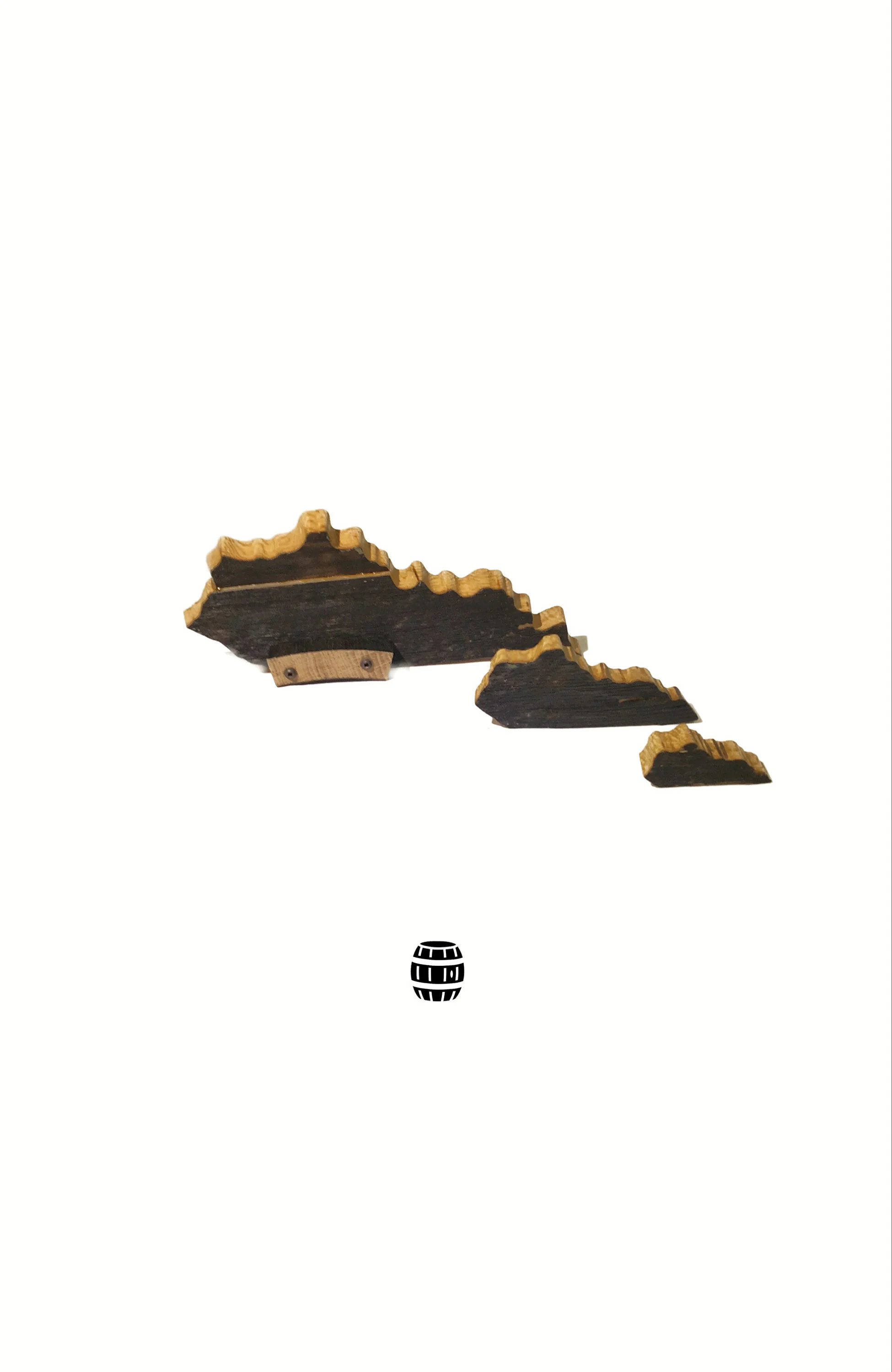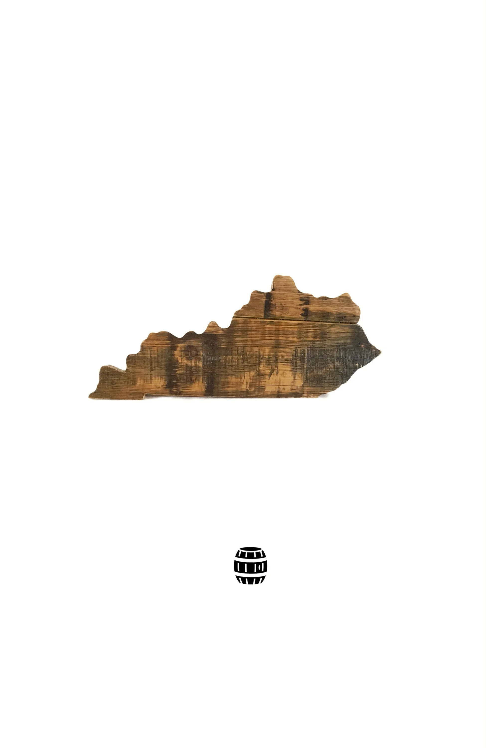 This state of Kentucky Cutout is a handcrafted item made from reclaimed bourbon and whiskey barrels.