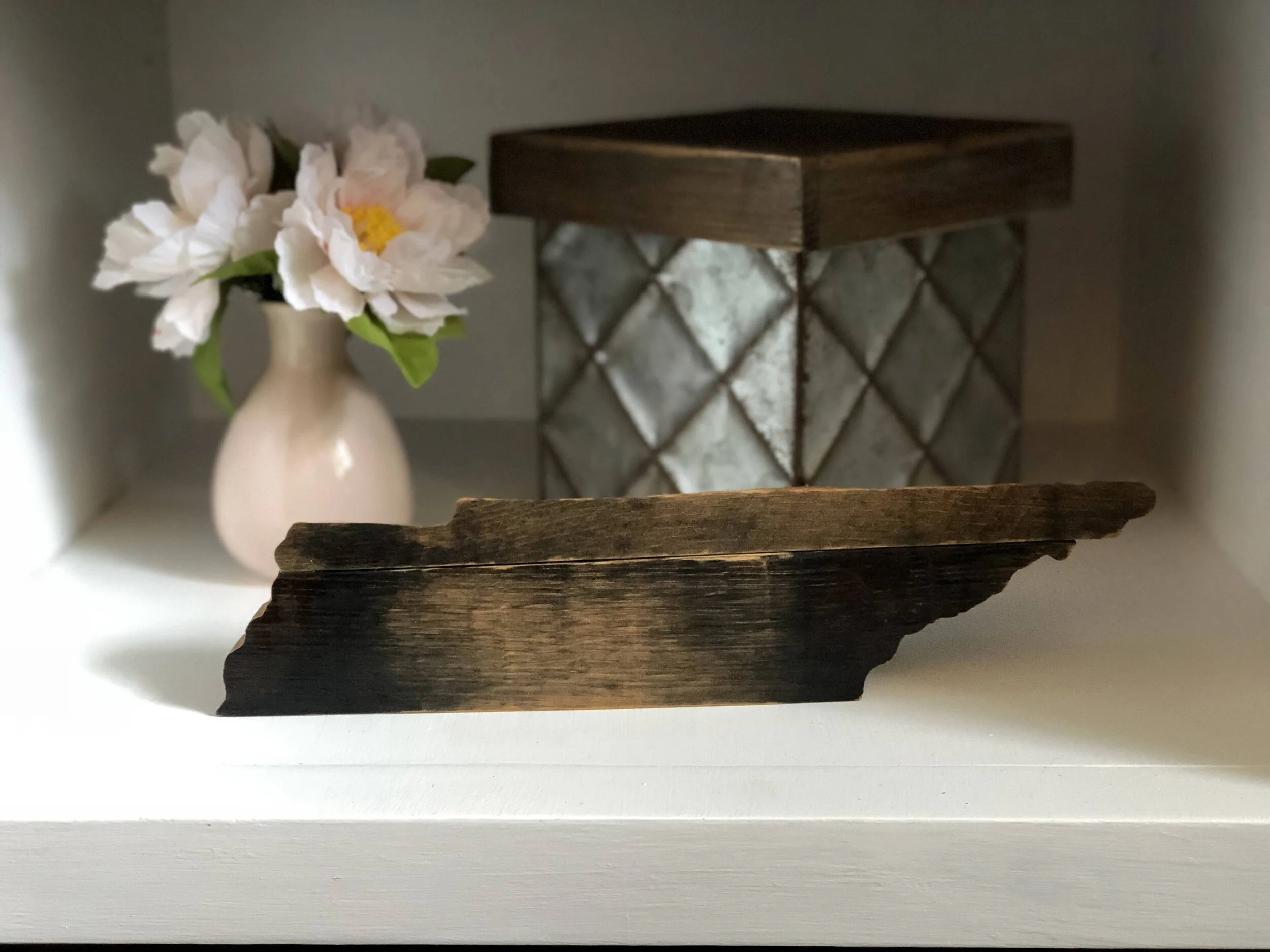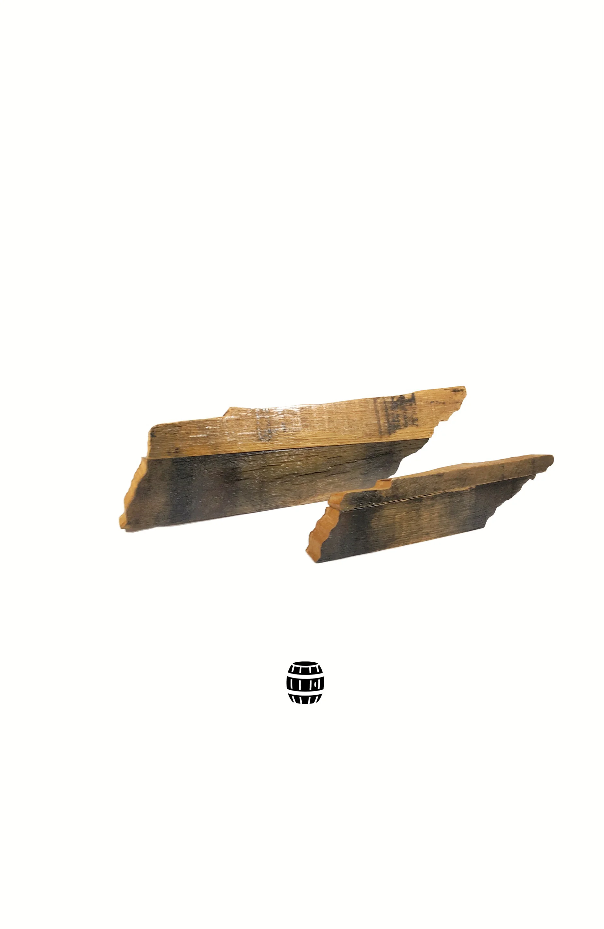 The back of the state shape still shows the black charring from the beginning of the barrel making process.