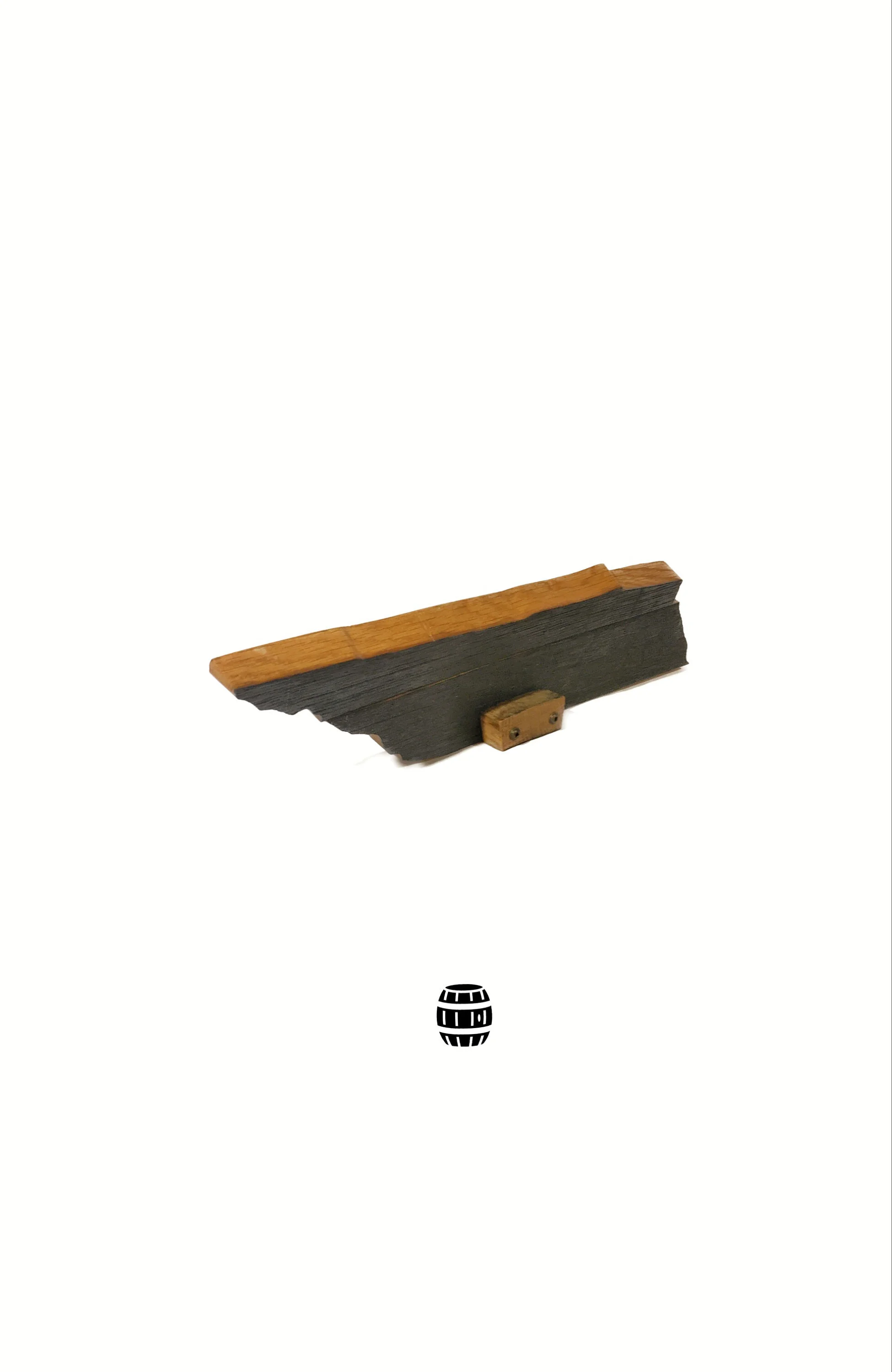 This home accent piece is a handcrafted item made from reclaimed bourbon and whiskey barrels.